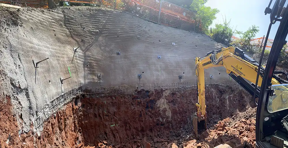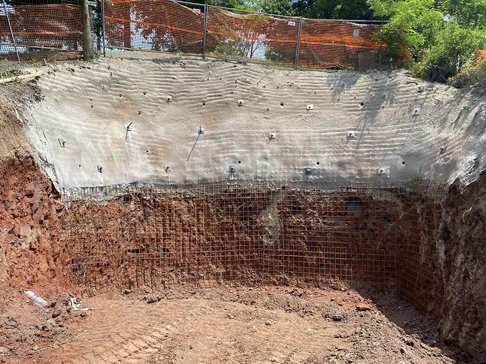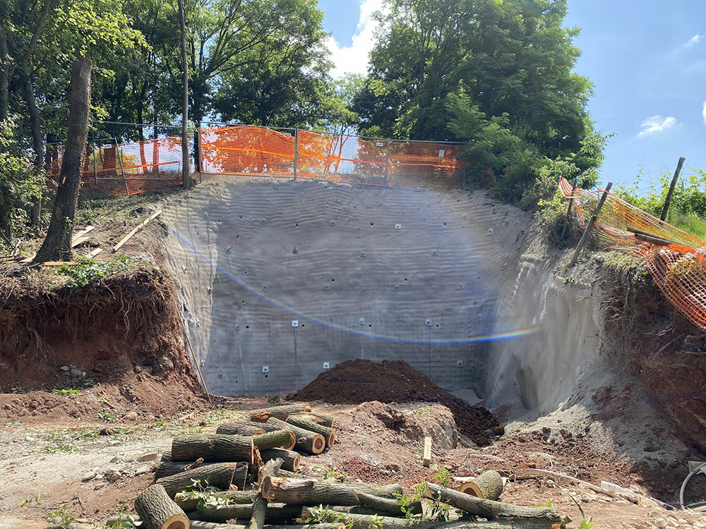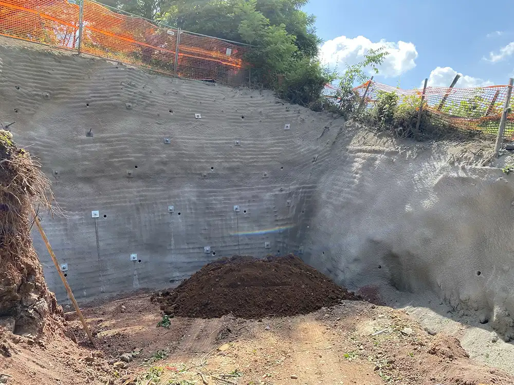 Contattati dal committente per risolvere una problematica sorta in fase esecutiva, abbiamo proposto la realizzazione di una parete chiodata con spitz beton a consolidamento di una scarpata per la realizzazione di un nuovo serbatoio di accumulo per un acquedotto.