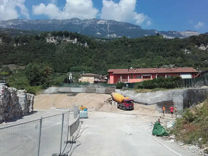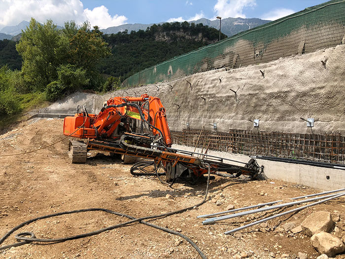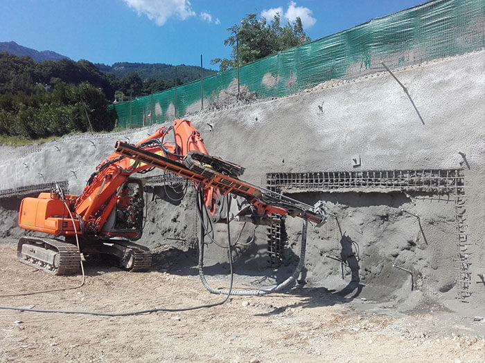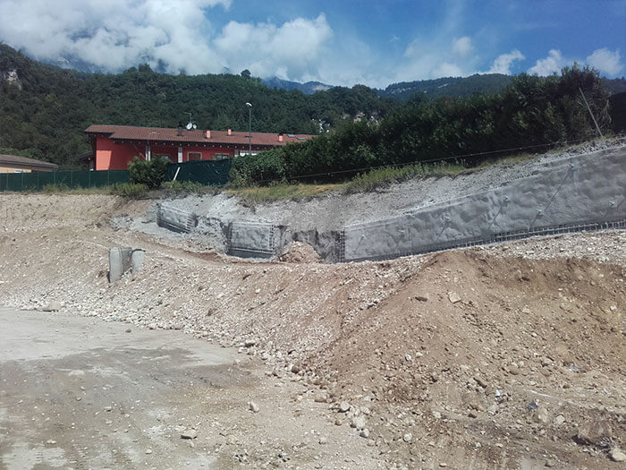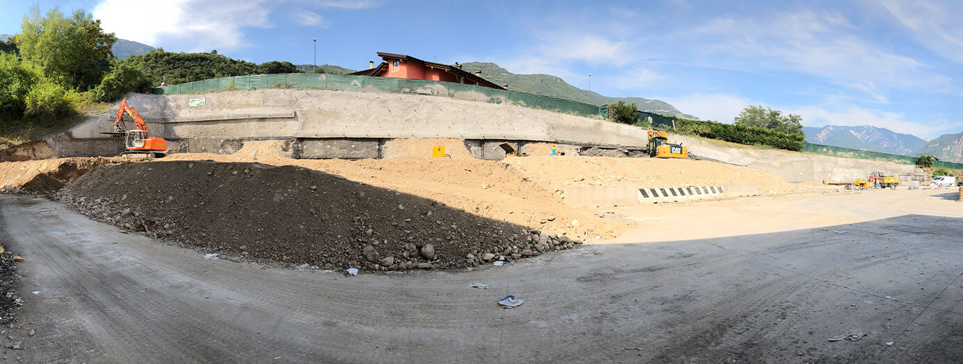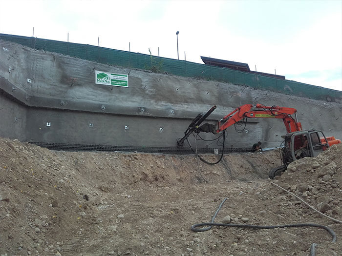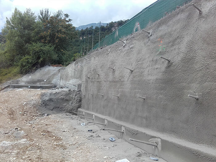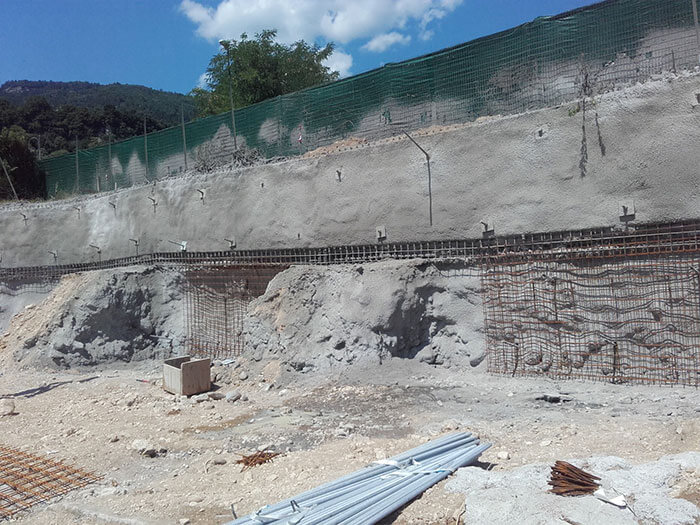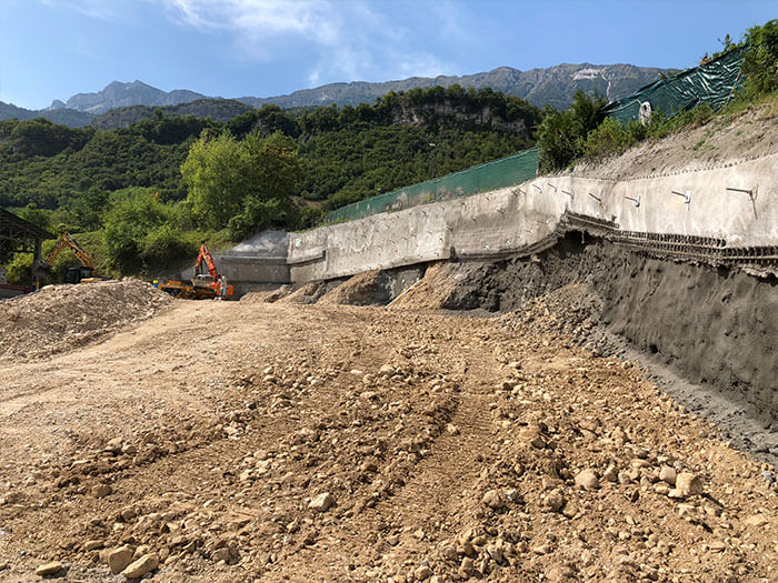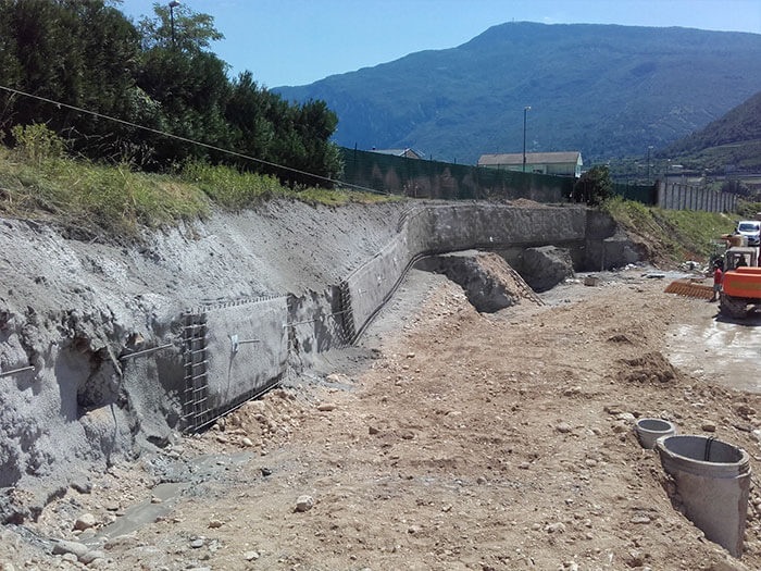 Dopo lo studio di varie tecnologie si è optato per la parete chiodata verticale con spritz beton e barre autoperforanti zincate.